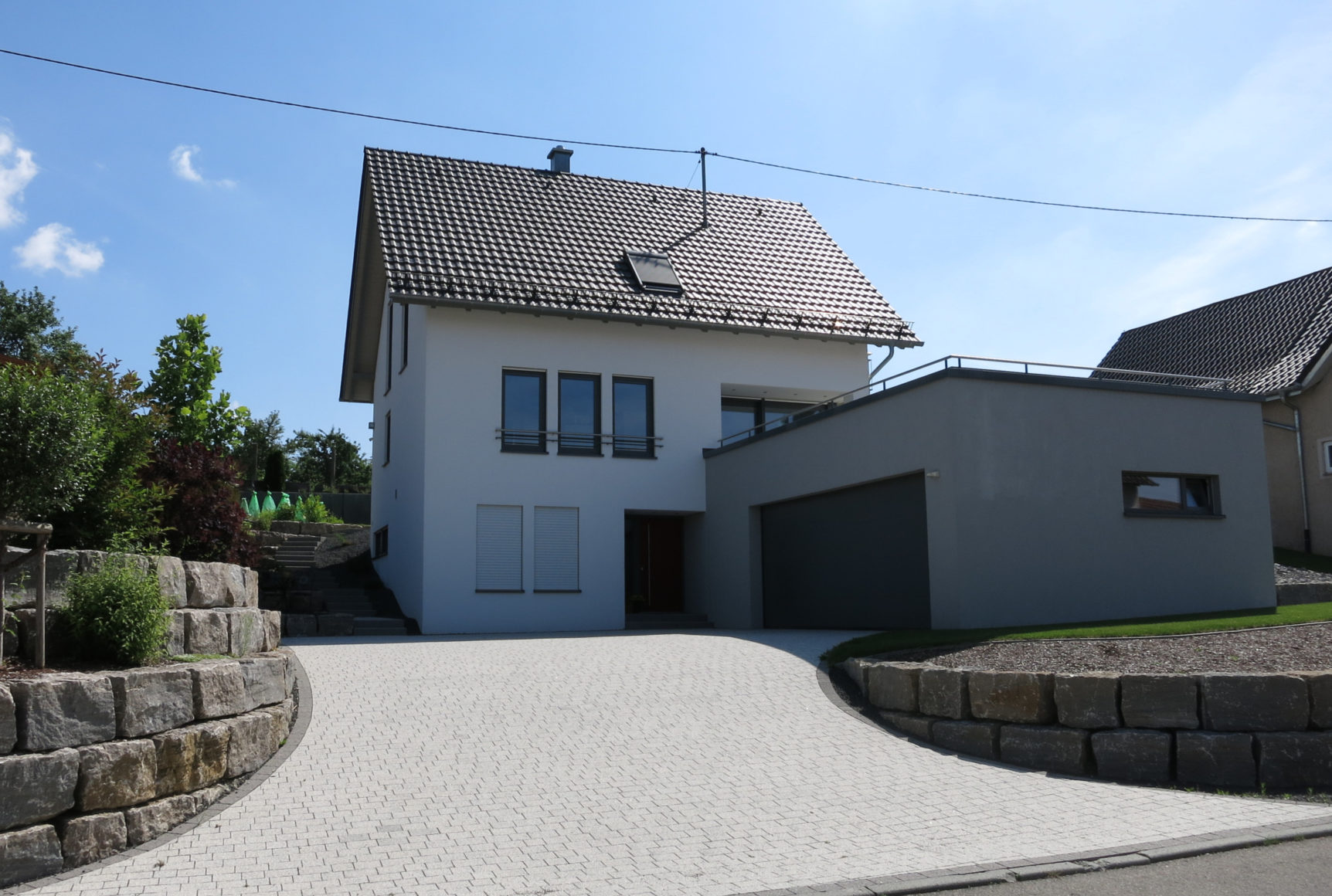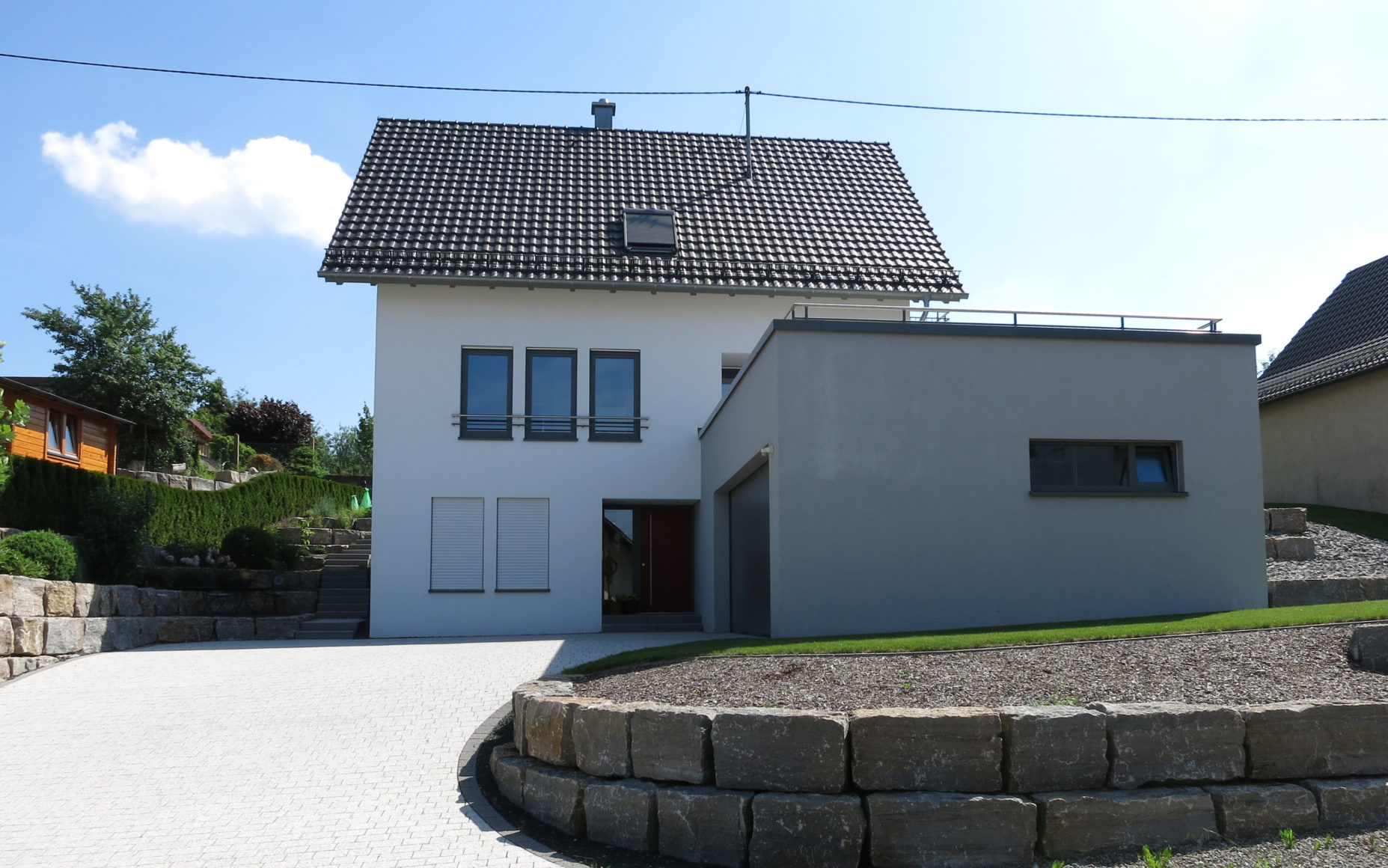 Genehmigungsplanung für den Neubau eines Wohnhauses in Hanglage mit Einliegerwohnung im Untergeschoss.