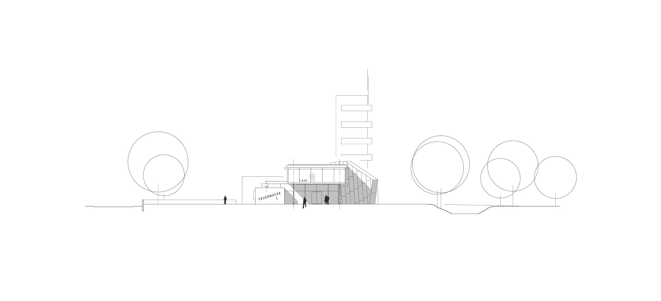 Realisierungswettbewerb für den Bau des neuen Feuerwehrgerätehauses mit Werkdienstwohnungen für die FFW Freising mit einem starken städtbaubaulichen Aspekt.